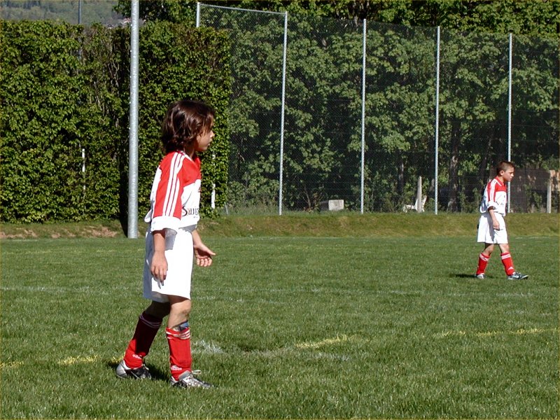 Samedi 3 mai 2003 - Genolier/Begnins III - FC Chêne-Aubonne I : 3-139h15, Begnins. Aubonne est privé de certains de ses titulaires; Fabien et Christophe, tous deux de 1994, sont là en renfort et réaliseront d'ailleurs une excellent match. AFR - Agence Féchystone
