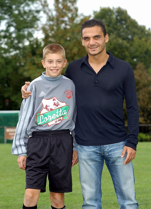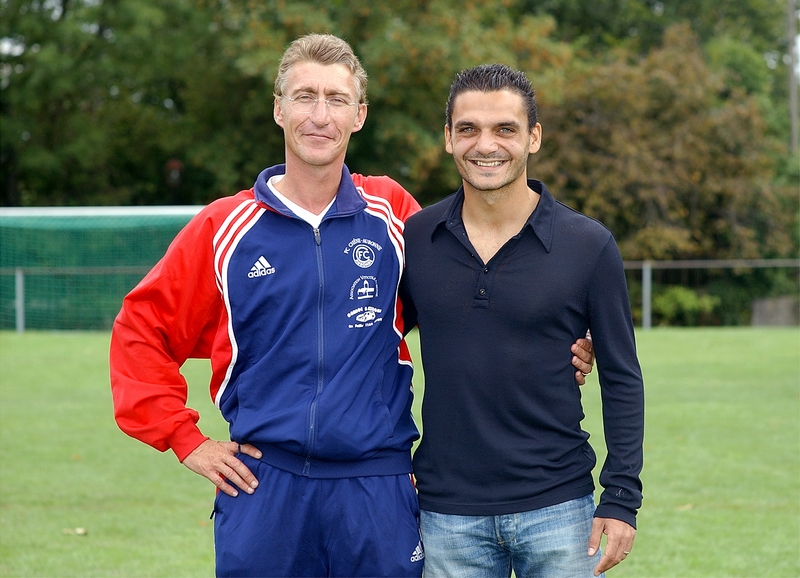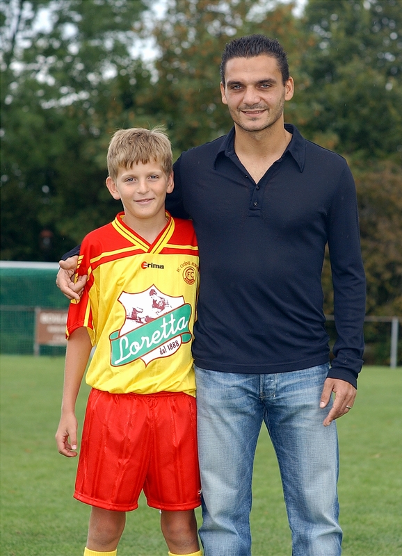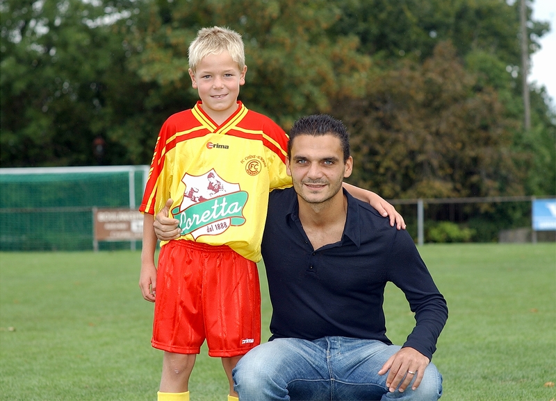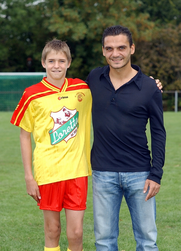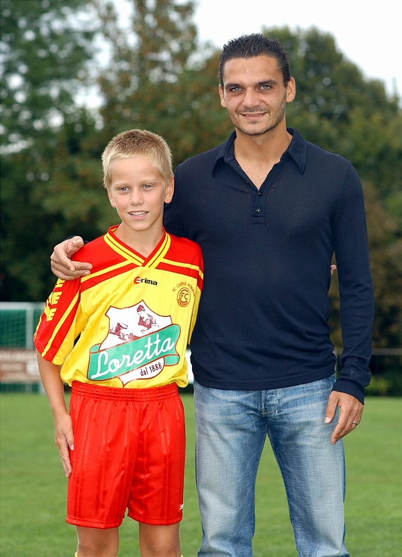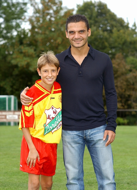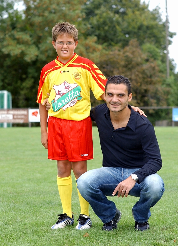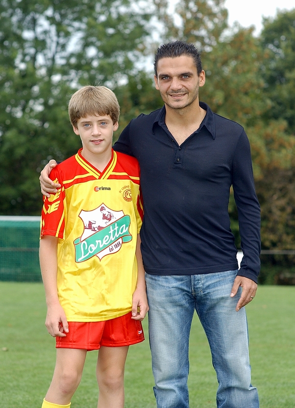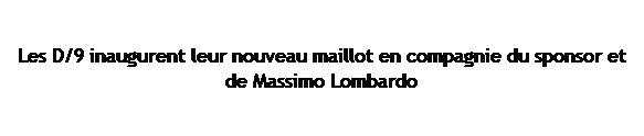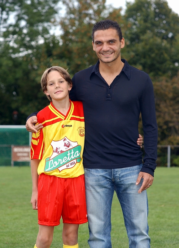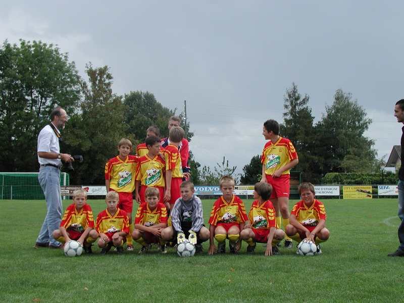 Samedi 30 août 2003Massimo l'avait promis, il est revenu à Aubonne, à l'occasion de l'inauguration du nouveau maillot des D/9, et ce à la veille d'un important match de Servette contre YB (Victoire de Servette par 4-1, super match de Massimo !).. AFR - Agence Féchystone L'équipe au complet dans son nouveau maillot (nickel propre !) Le Président, Roland, le sponsor, Chloé Les D/9 (Vincent, Sadri, Nicolas, David F., Jérémie, Timothée, Michaël, David R., Alex, Florent, Guillaume, Jonathan)